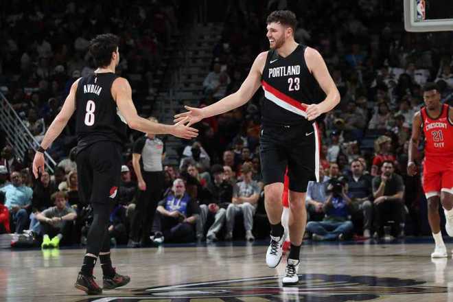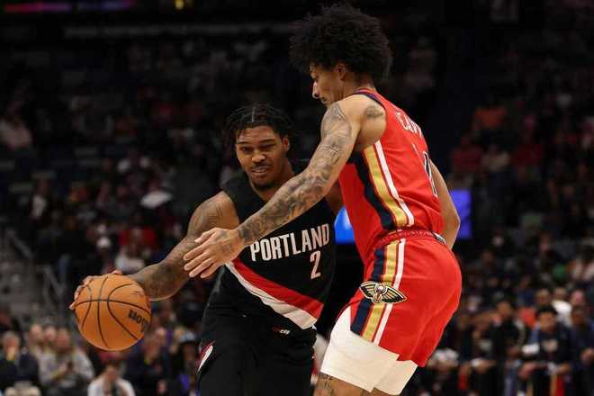 开拓者:杨瀚森0分、阿夫迪亚34分7板11助、夏普23分5板、乐福22分2板2助、卡马拉14分6板4助、克林根11分15板。鹈鹕:锡安35分8板2助2断2帽、费尔斯18分5板4助2帽、马特科维奇16分2板2断2帽、普尔16分6助、麦戈文斯13分4板。